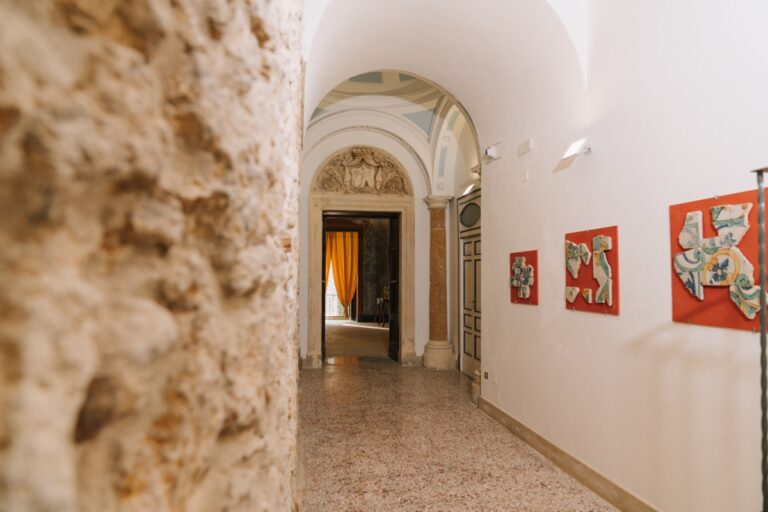 I Saloni di Rappresentanza, ubicati al secondo piano del Palazzo, accolgono il visitatore con l’imponenza del loro muro perimetrale antecedente al mille. Un muro appartenente all’antica cinta muraria della città che delimita uno spazio sormontato da archi a sesto acuto e volte a crociera, testimonianza del fatto che il palazzo è un insieme di resti di origine medievale.