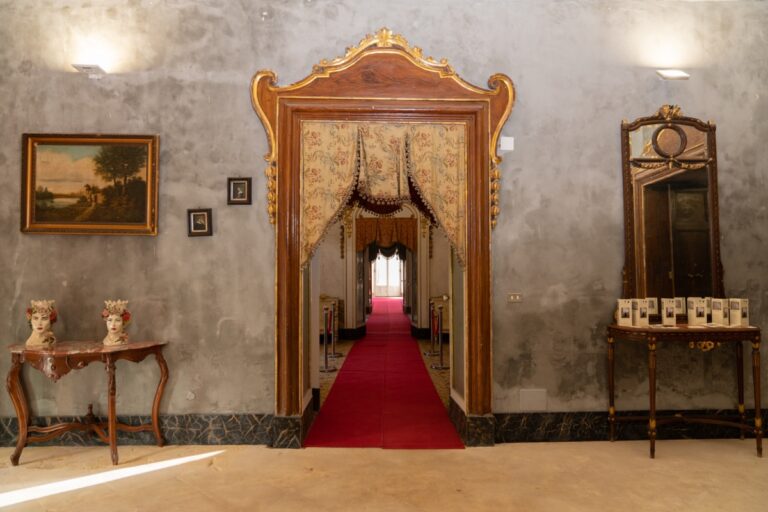 Da questo salone di intravvede “l’enfilade” o sequenza dei saloni successivi, in un crescendo di fastosità e importanza dei decori.