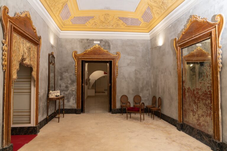 Inoltre, da questo Salone, si accede attraverso un passaggio di sapore “medievale”, al “carruggio” di via Bonanno, elemento che rende il Palazzo un ponte tra l’aristocratica eleganza delle dimore nobiliari di via San Bonaventura e le antiche testimonianze architettoniche, storiche e popolari dei carruggi di Caltagirone, di riconosciuta influenza genovese.